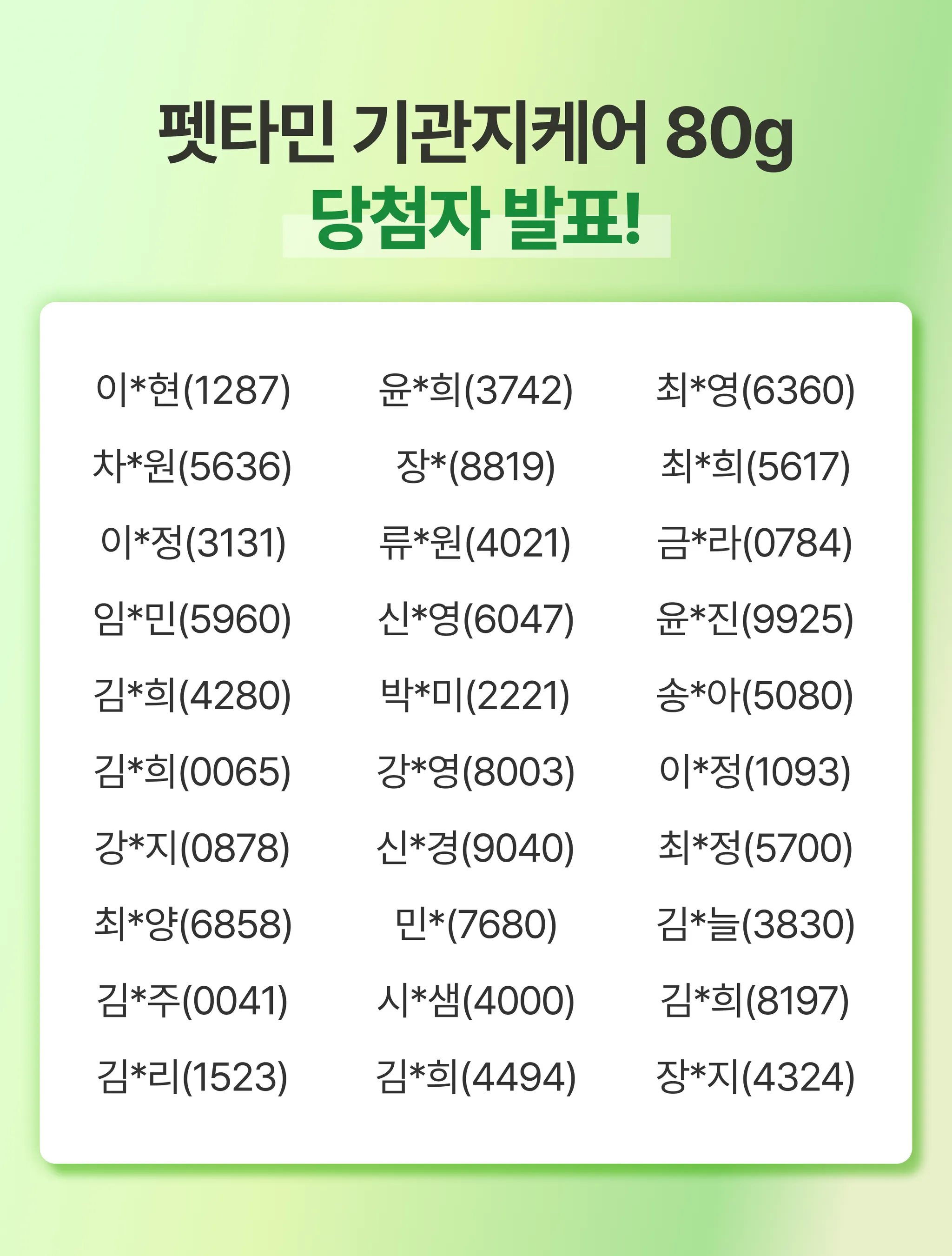 이번 체험단 당첨자 30명은 다음과 같습니다!