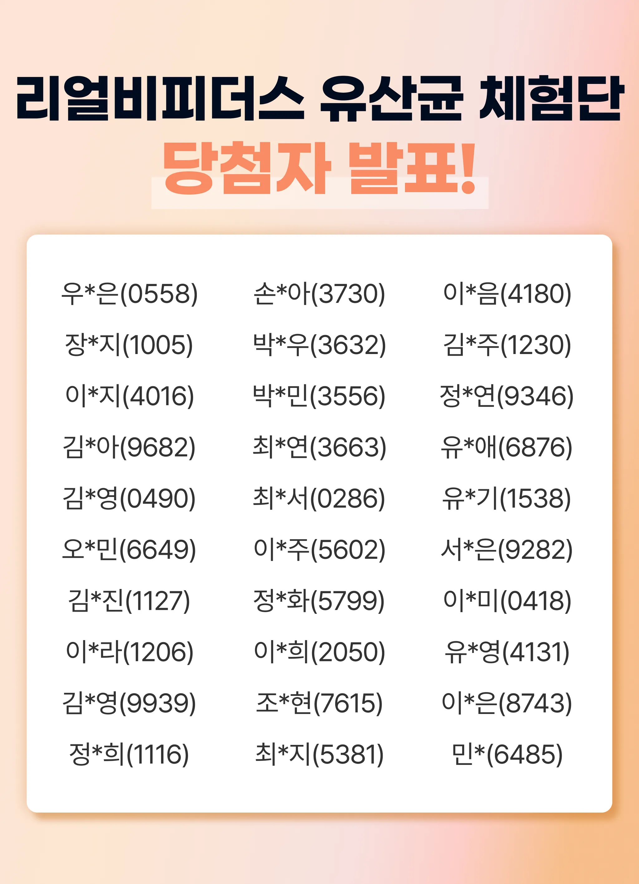 이번 체험단 당첨자 30명은 다음과 같습니다!