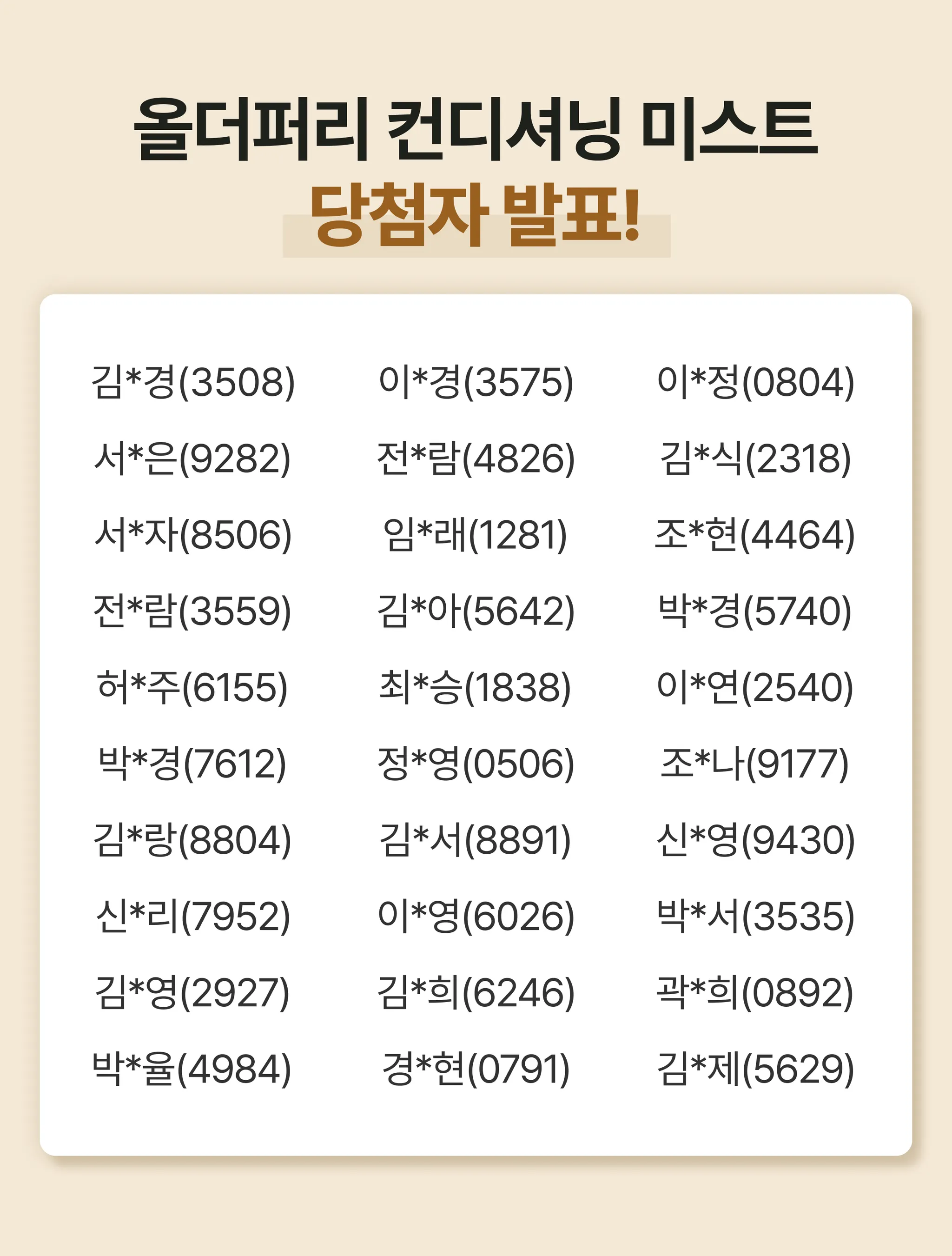 올더퍼리 컨디셔닝 미스트(150ml) 체험단에 참여해 주신 모든 분들께