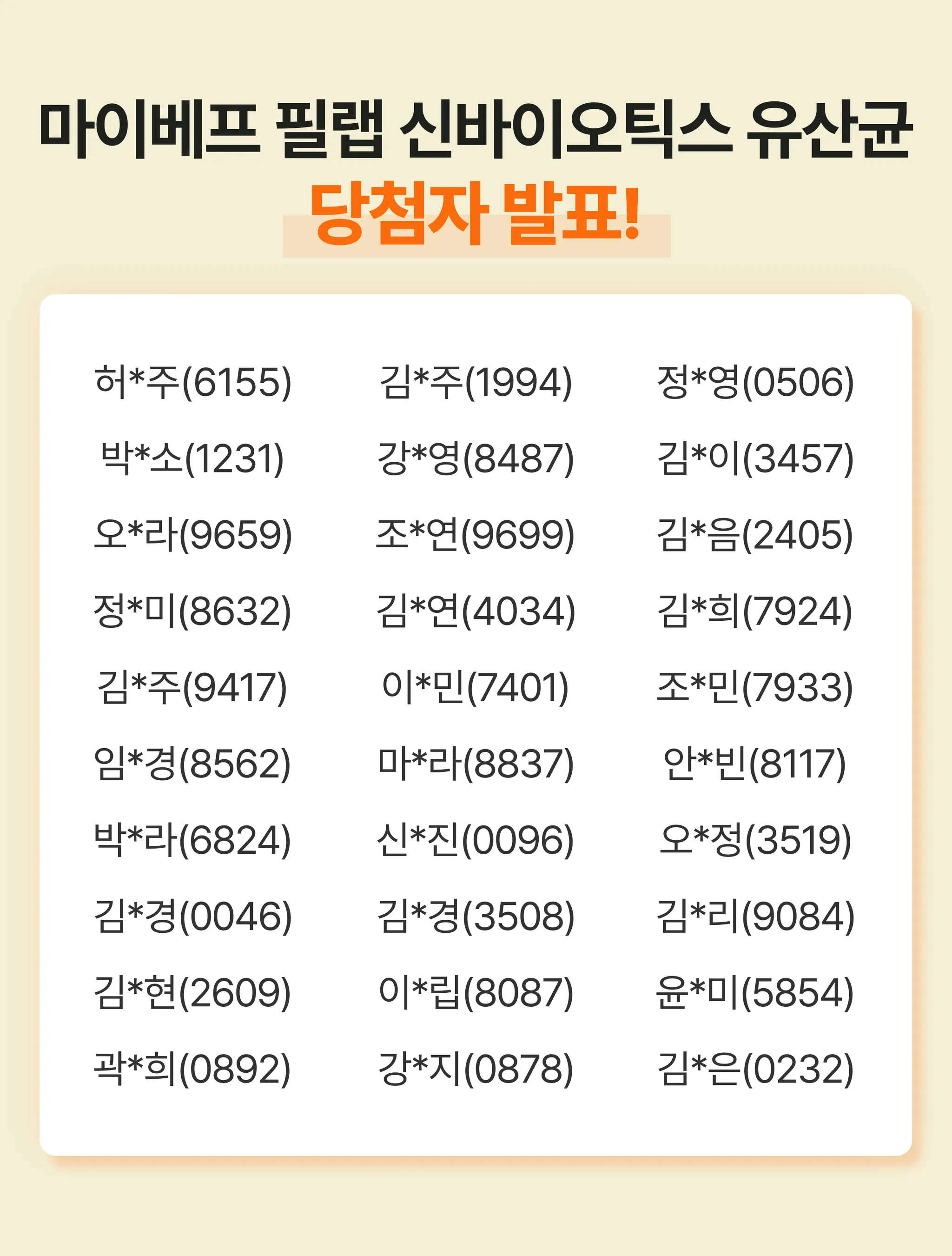 마이베프 필랩 신바이오틱스 강아지 고양이 50억 보장 유산균 2g(30포) 체험단에 참여해 주신 모든 분들께
