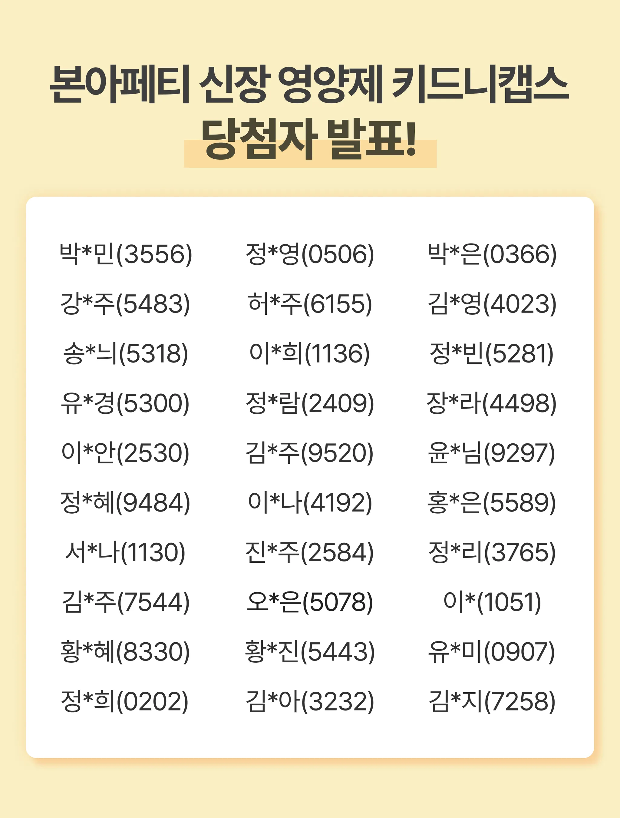 본아페티 신장 영양제 키드니캡스 체험단에 참여해 주신 모든 분들께