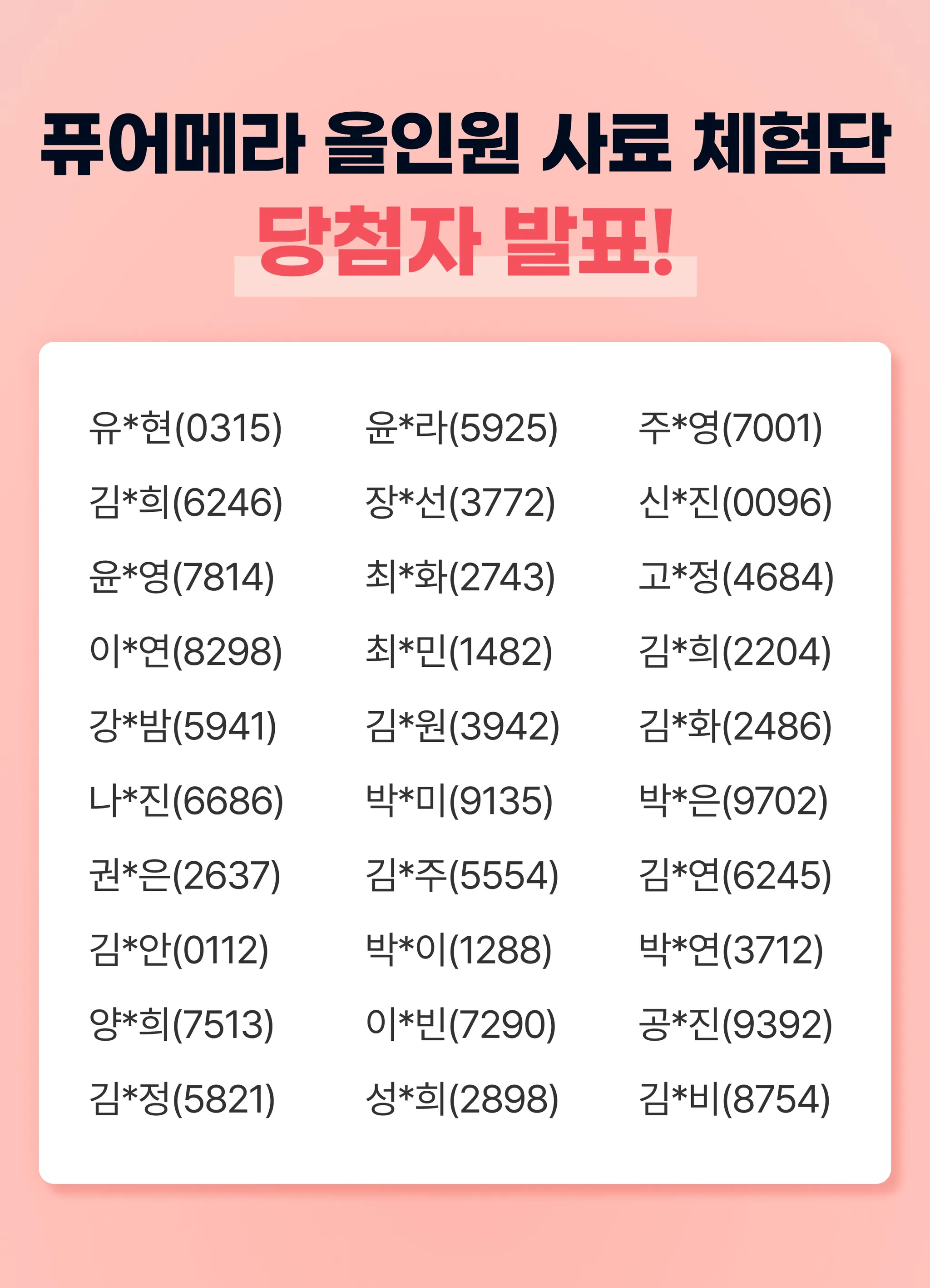 이번 체험단 당첨자 30명은 다음과 같습니다!