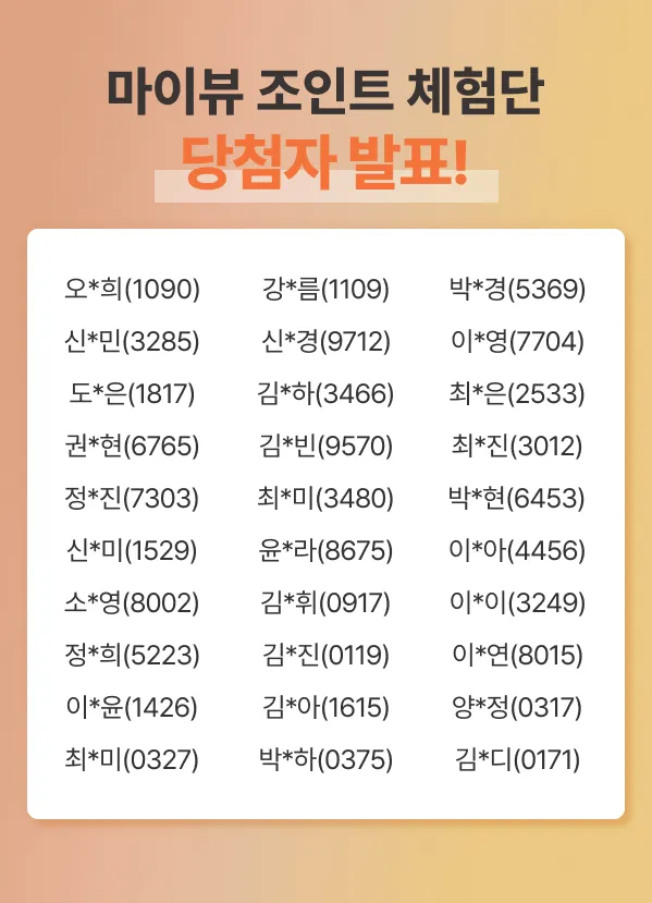 마이뷰 조인트 체험단에 참여해주신 모든 분들께