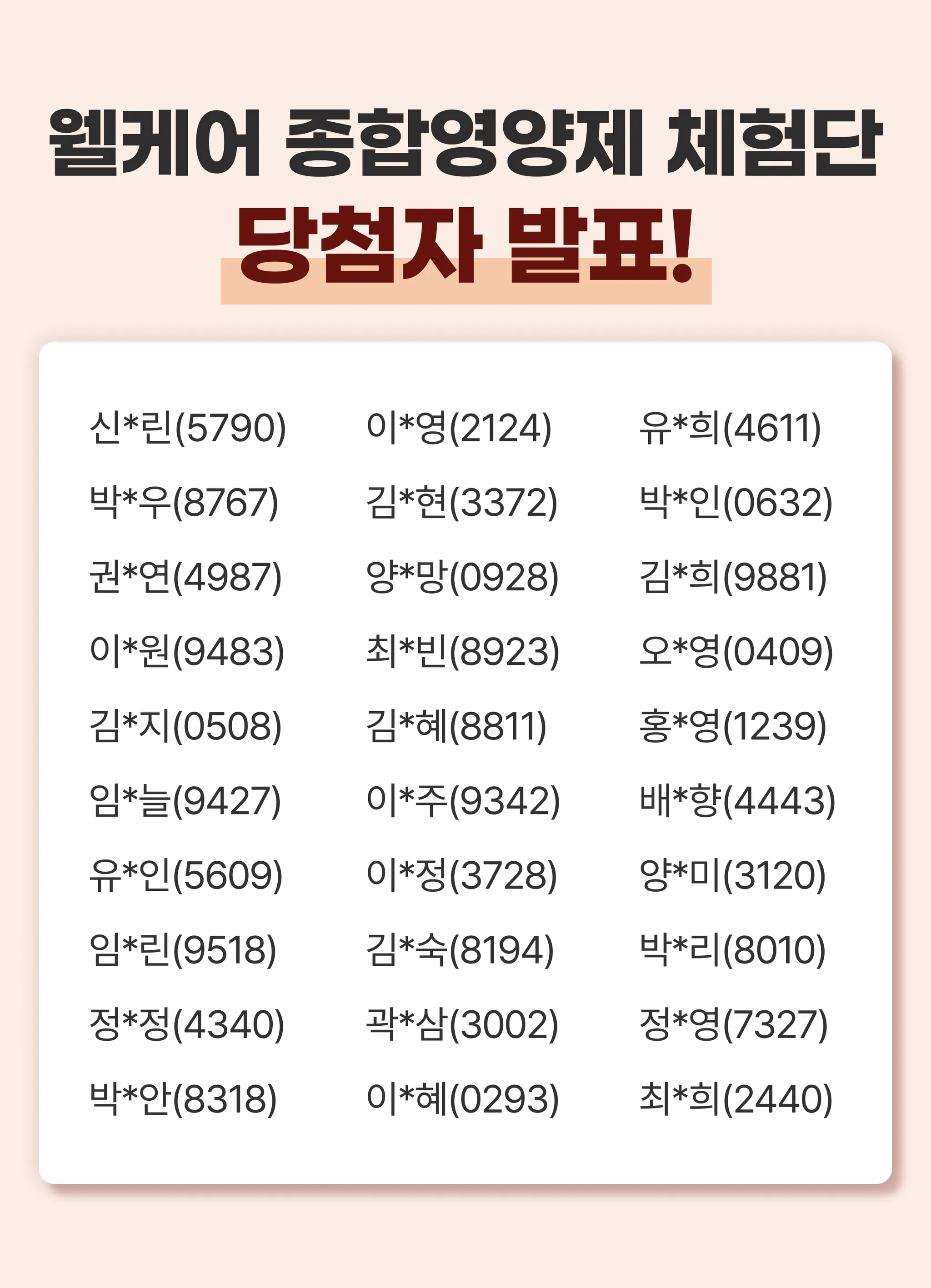 이번 체험단 당첨자 30명은 다음과 같습니다!