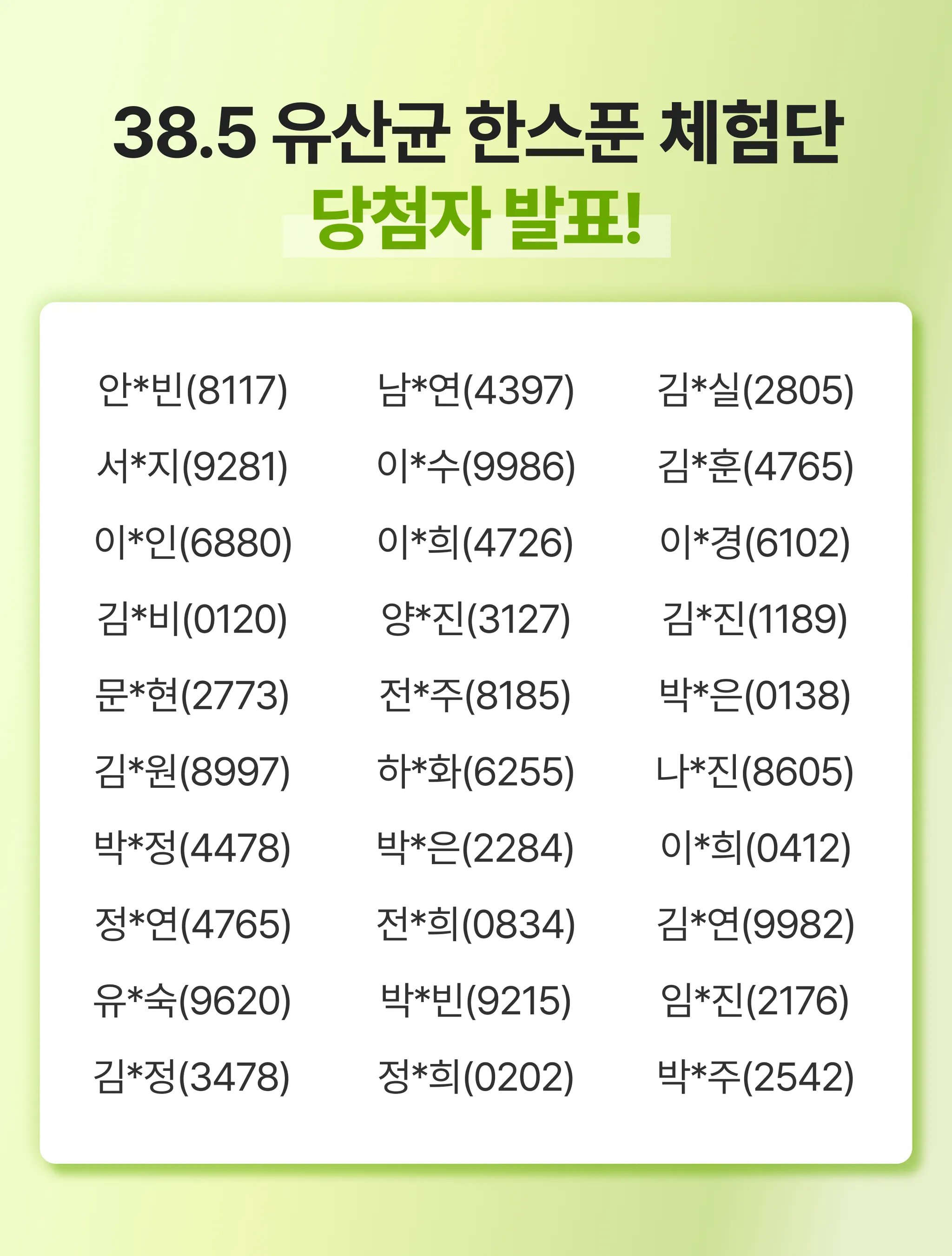 38.5 유산균 한스푼 체험단에 참여해 주신 모든 분들께