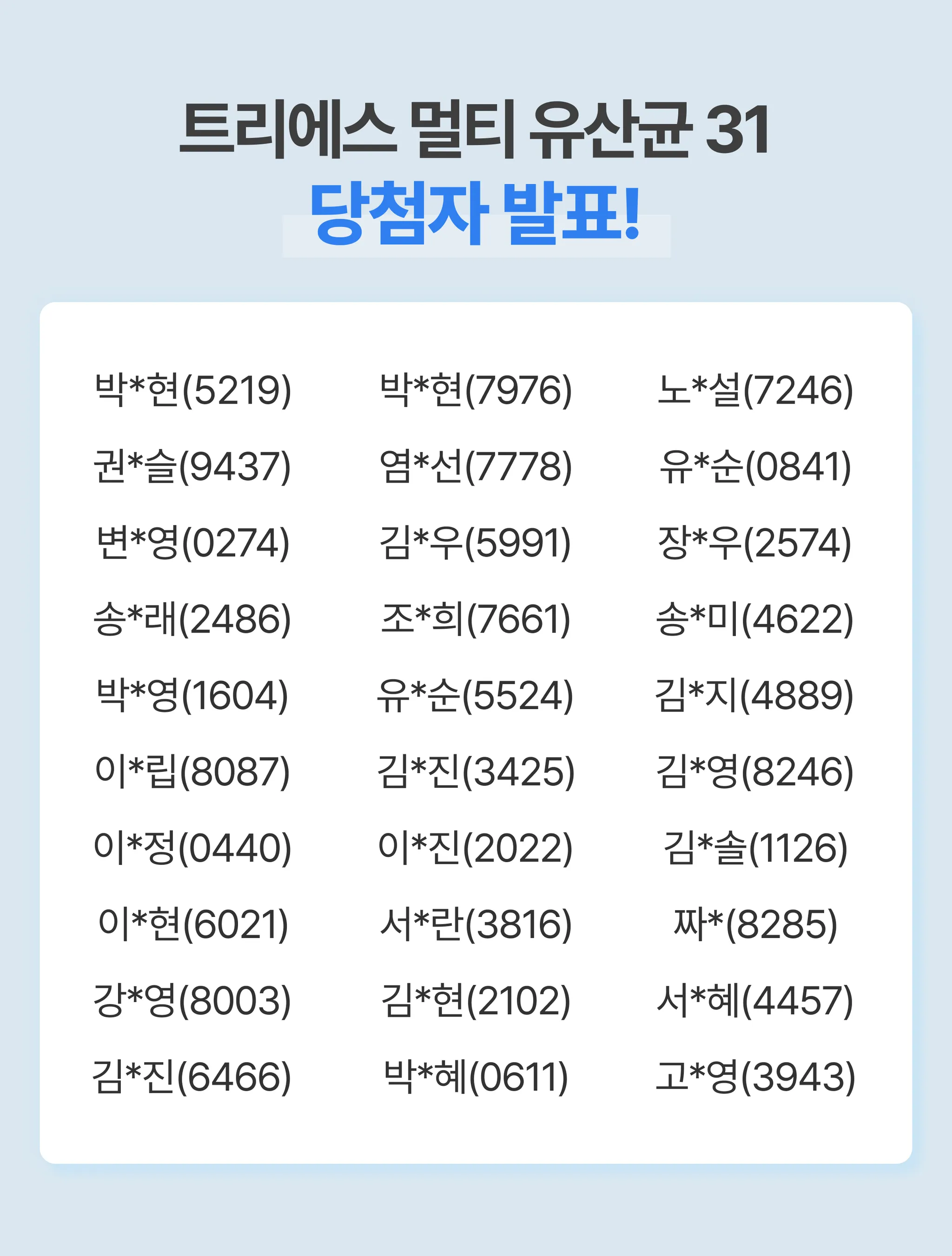 트리에스 최다균종31 멀티 유산균 체험단에 참여해 주신 모든 분들께