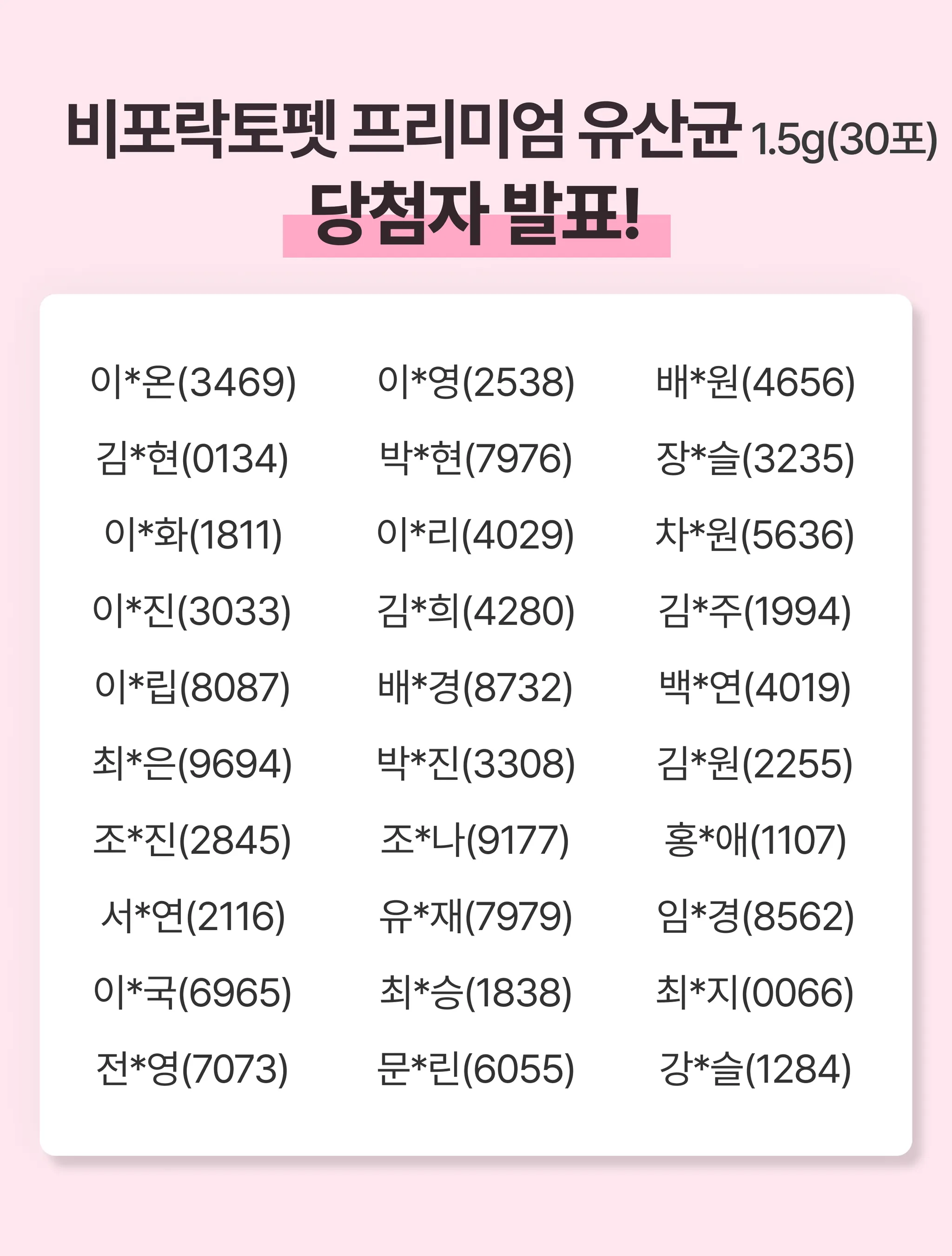이번 체험단 당첨자 30명은 다음과 같습니다!