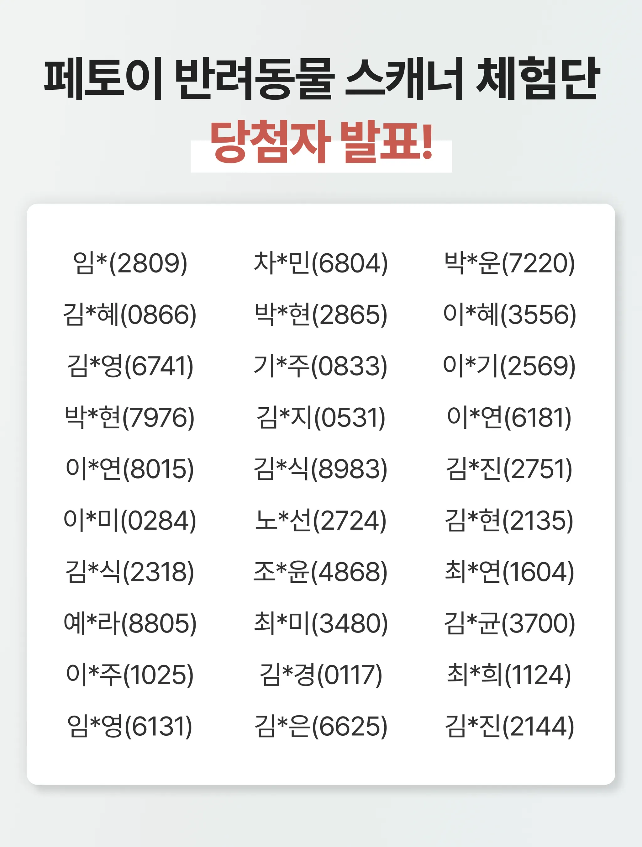 페토이 스캐너 체험단에 참여해 주신 모든 분들께