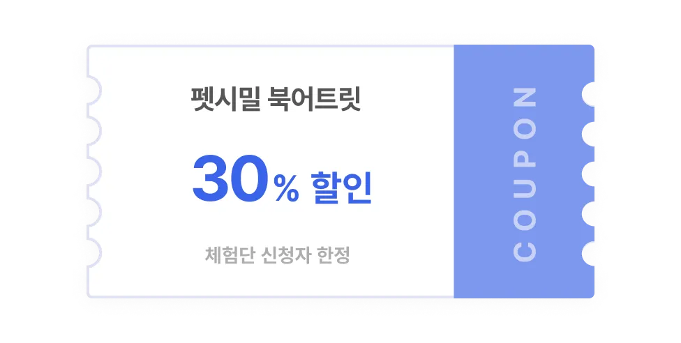 체험단에 신청해주신 분들께 ‘저지방 영양간식 펫시밀 북어트릿(75g)’을 저렴하게 만나보실 수 있도록, 30%할인 쿠폰을 발급해드렸어요!